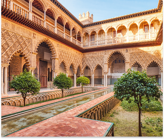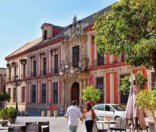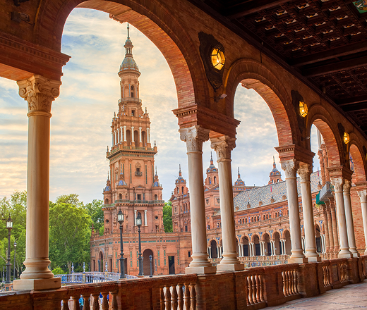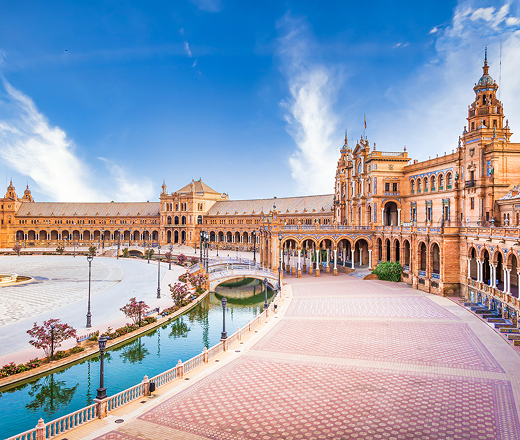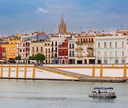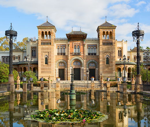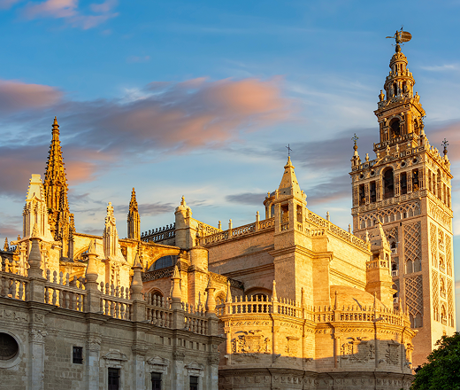 Key attractions include Sevilla Cathedral and the Giralda, the Real Alcázar, Plaza de España, Parque de María Luisa, Barrio de Santa Cruz, Triana, Plaza de Toros de la Maestranza, Museo de Bellas Artes, Torre del Oro, and Alameda de Hércules.