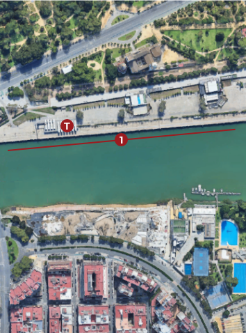 The Sevilla Cruise Port Terminal, located at Muelle de las Delicias, is designed to support cruise operations in both transit and turnaround modes within a unique inland port setting. The terminal building covers approximately 1,092 m² and is designed to ensure smooth passenger and luggage flows, supporting safe and efficient embarkation and disembarkation processes. All operations fully comply with the International Ship and Port Facility Security (ISPS) Code and applicable safety and security regulations.
